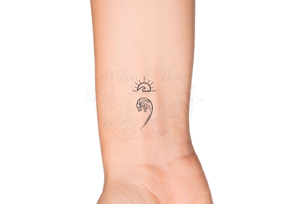 Sun Wave Semicolon Temporary Tattoo Love Yourself Semi Colon Etsy Uk